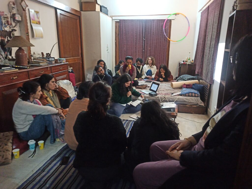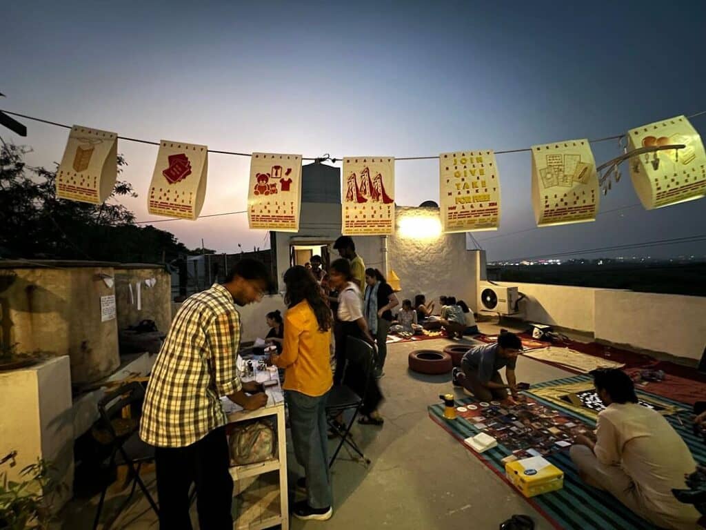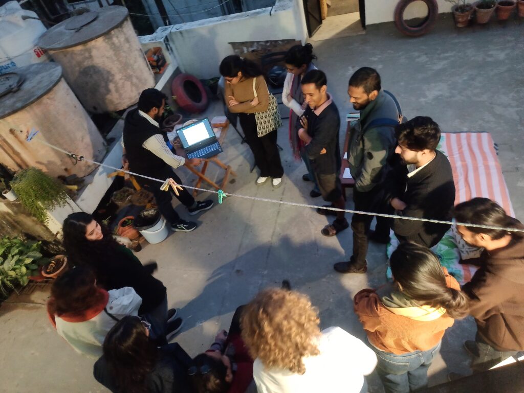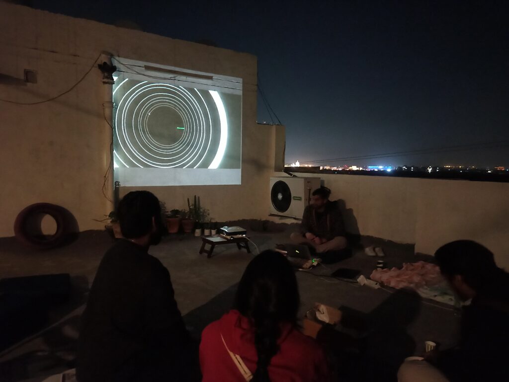 Another initiative that I started in 2023 while teaching at the MFA programme at Shiv Nadar University in Delhi, was peer+students’ meet-ups, where students and recent pass-outs of BFA, MFA, design, art research and creative fields in Delhi NCR came together at terrace/6464 to introduce their interests, practices and ask questions of the gaps in art education systems in India. We have done 3 such meet-ups till now.
