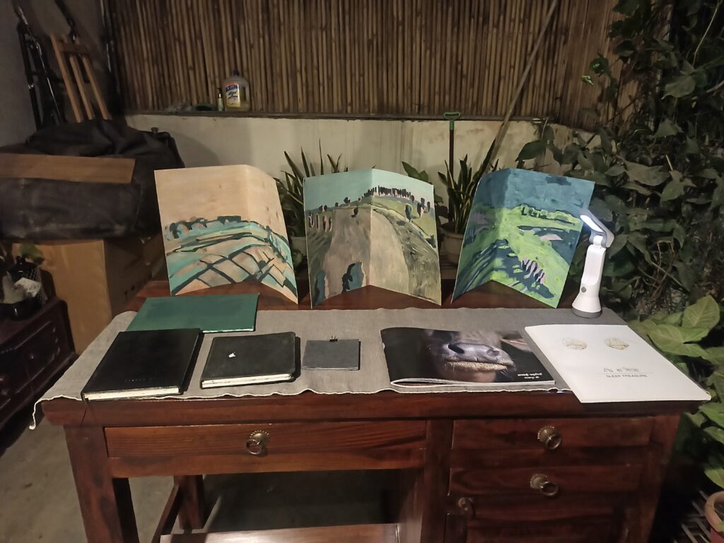 In the first Peer Pollinations, the artists- Arindam Manna, Pavni Anand and Maithili Bavkar- presented their works, they brought their artist books, sketchbook and original works (painting and prints) that were displayed in the space and were also passed around the people while the discussions were happening.