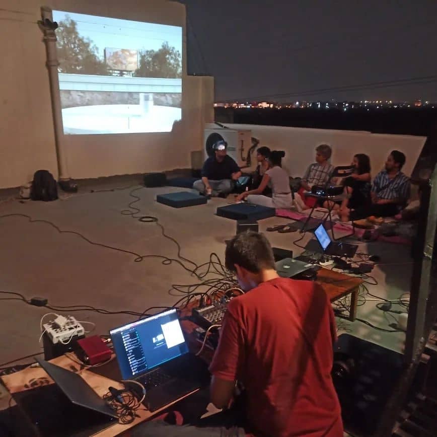 A space for artists’ gatherings in Vasantkunj, New Delhi, India since 2019, to organise and host artistic collaborations– students’ meet-ups, listening nights, sound jams, pop-up shows, gatherings, artists’ talks and other modes of coming together for cross-pollination and to lubricate conversations.